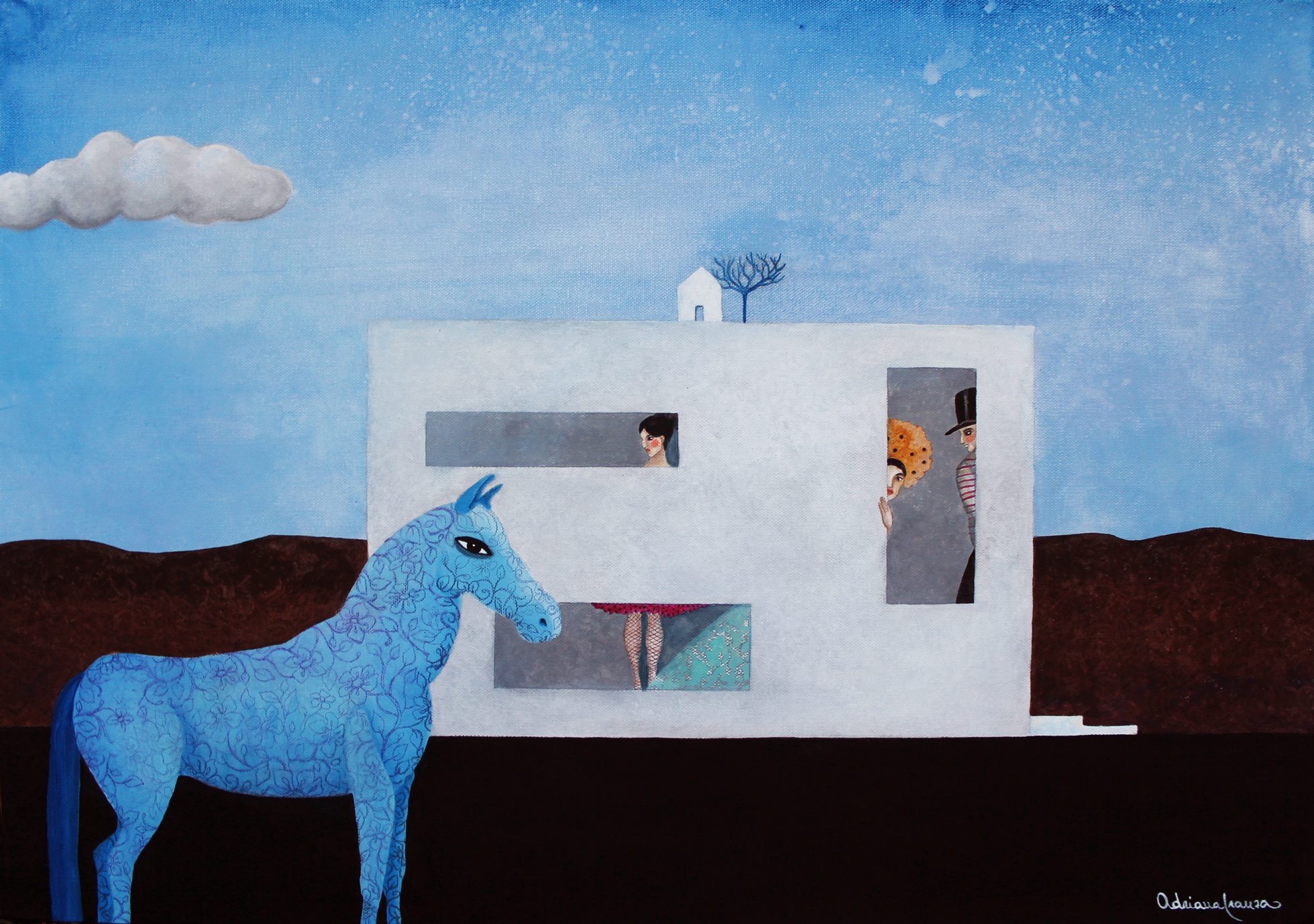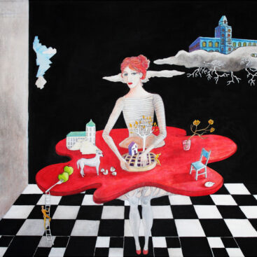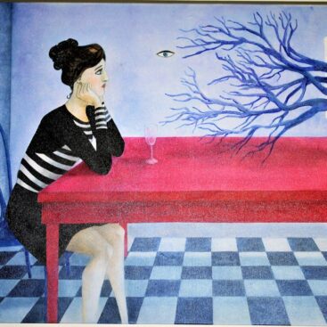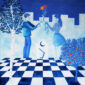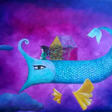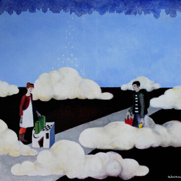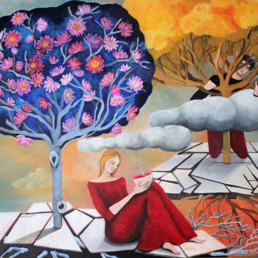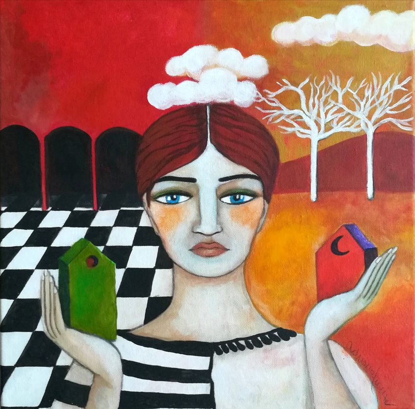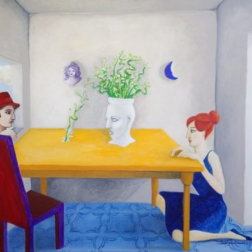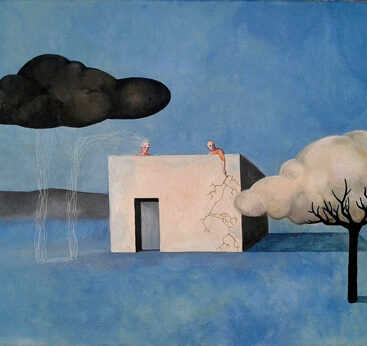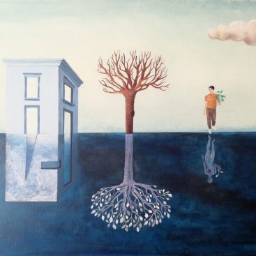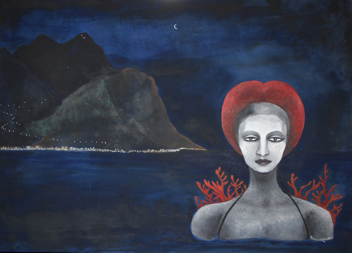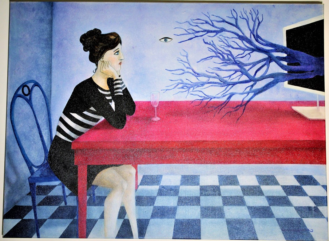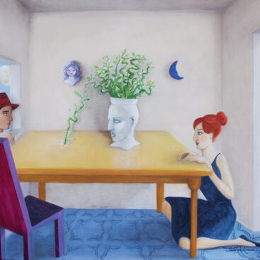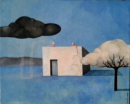 A dreamlike and surreal painting, tries to translate thoughts and moods, to trap nocturnal dreams and memories,  proceeding in parallel with  real life.