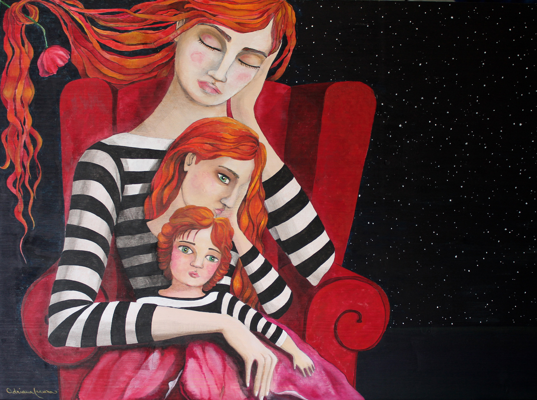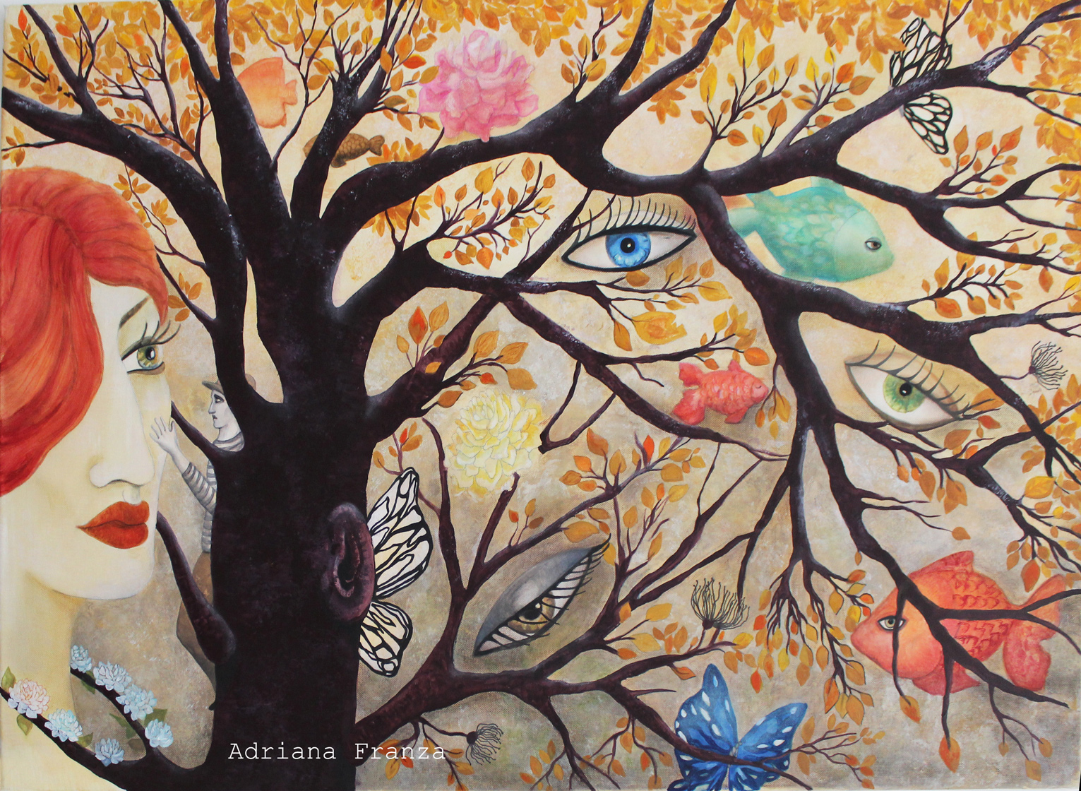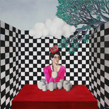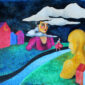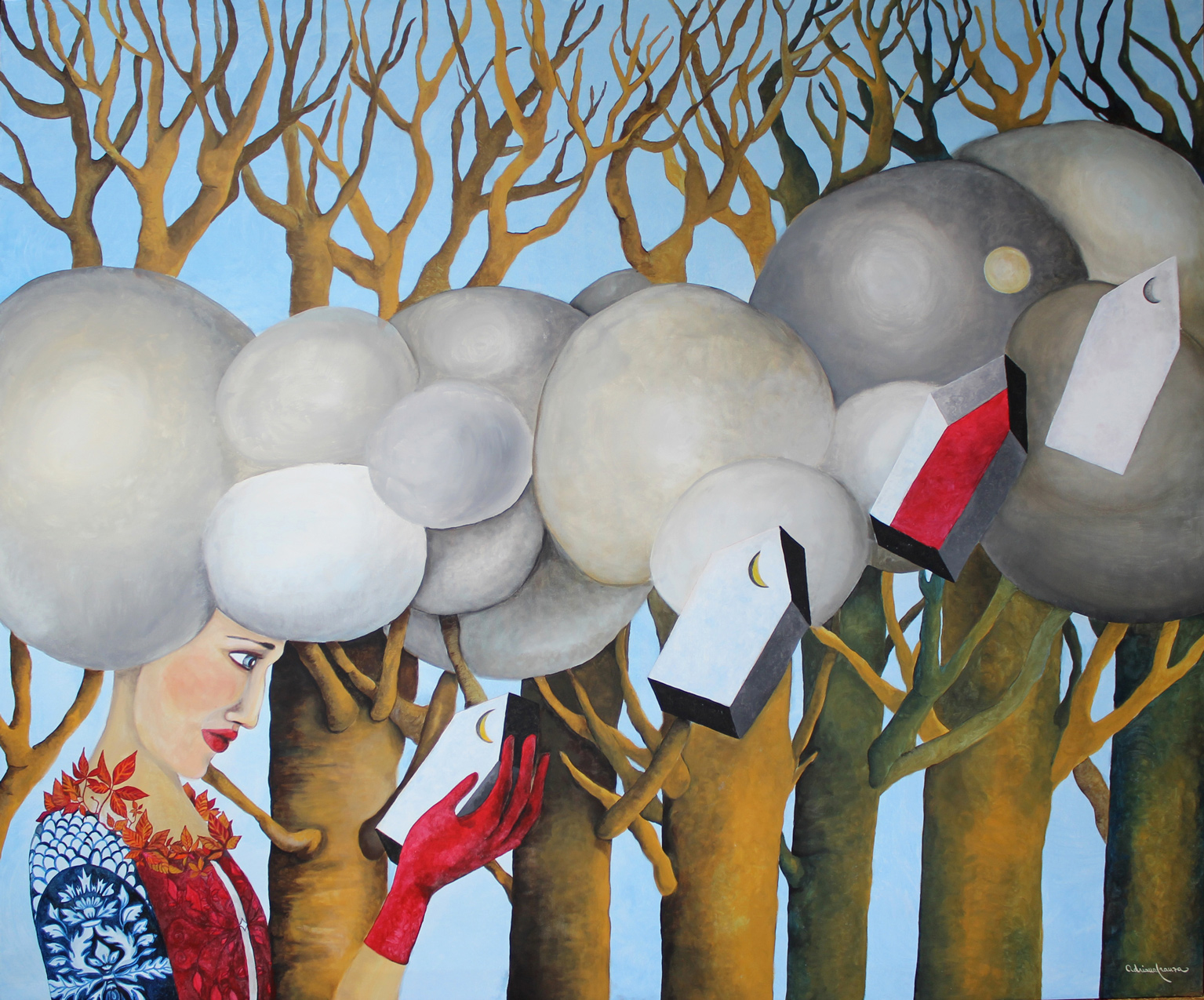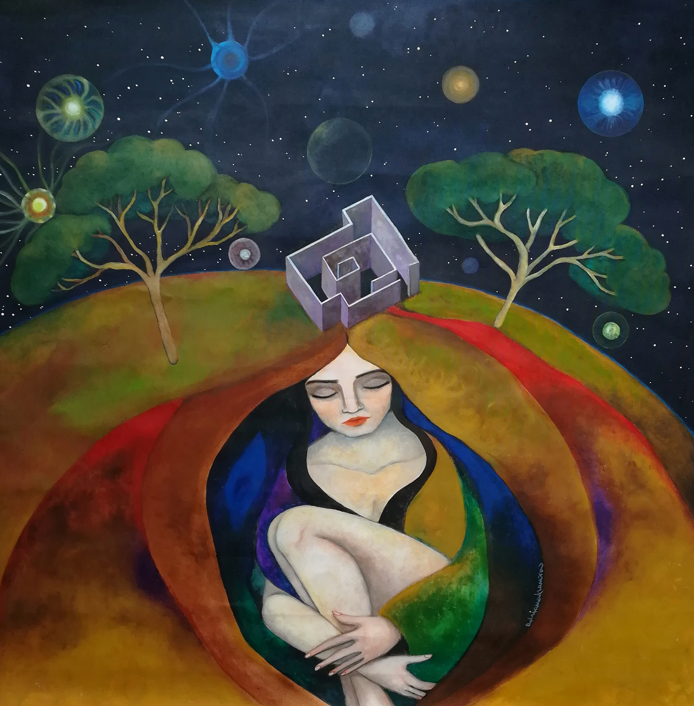 A dreamlike and surreal painting, tries to translate thoughts and moods, to trap nocturnal dreams and memories,  proceeding in parallel with  real life.