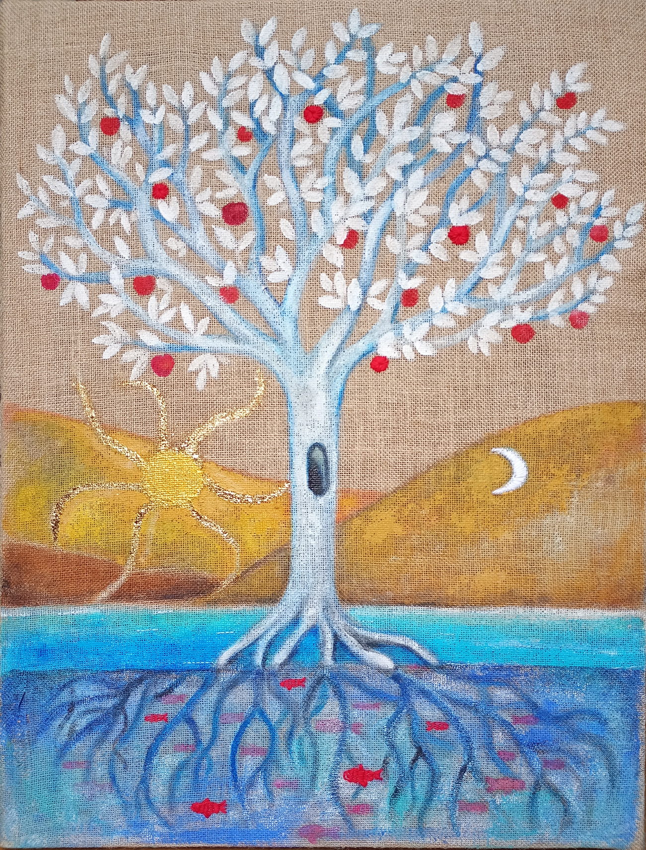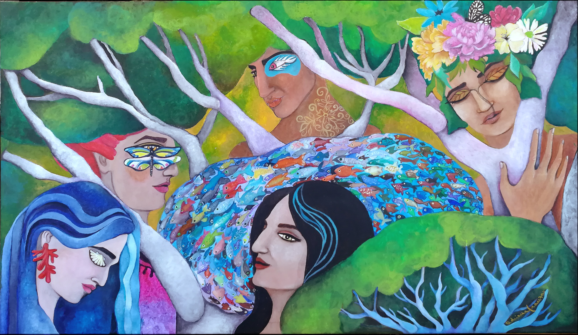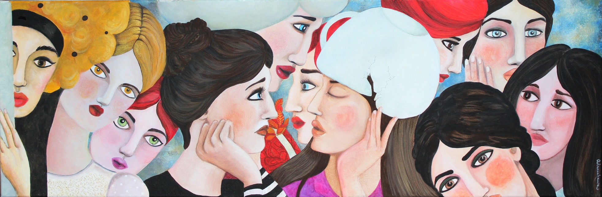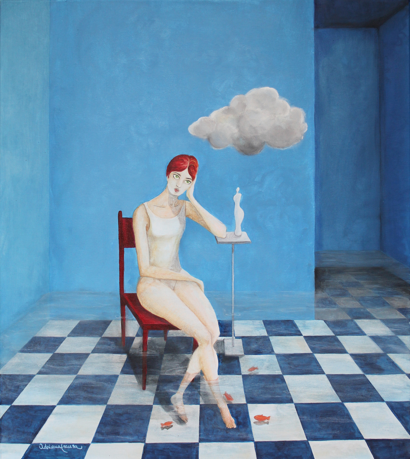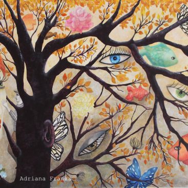 A dreamlike and surreal painting, tries to translate thoughts and moods, to trap nocturnal dreams and memories,  proceeding in parallel with  real life.