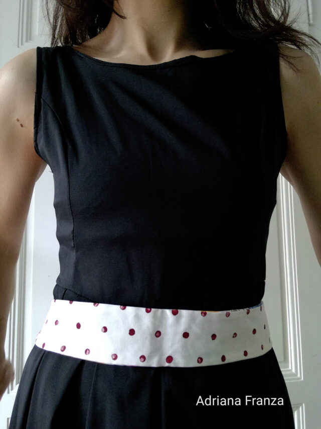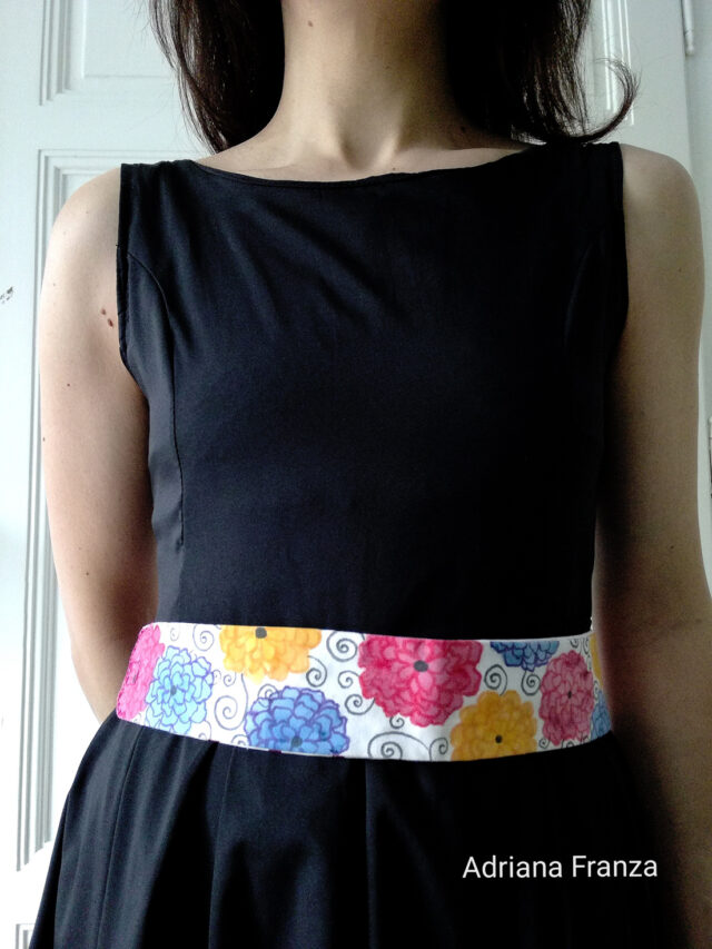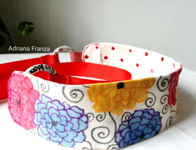 Cintura double-face dipinta a mano in cotone, con anelli di legno dipinto e nastro in gros-grain. Dimensioni della fascia in cotone: Altezza 5,5 cm; Lunghezza 43 cm. Lunghezza complessiva 1,74 m. Subito disponibile. Prezzo: 35€.