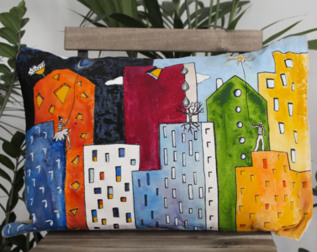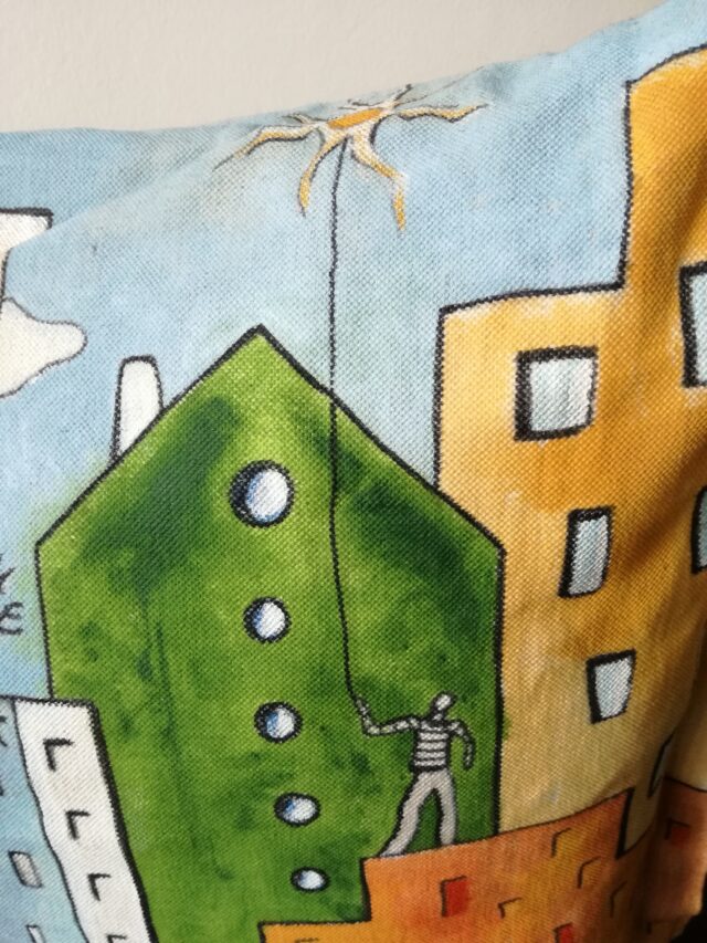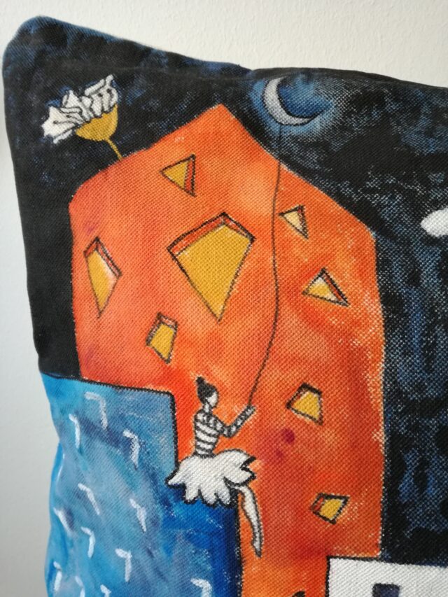 Adriana Franza2022-05-04T14:07:37+02:00 Cuscini Dipinti Maggiori informazioni Le due metà Cuscino dipinto a mano, concepito come un quadro. Chiusura a strappo /velcro). Federa in robusta tela, lavabile a mano in acqua fredda, 40x60 cm. Contattami per acquistare questo cuscino.