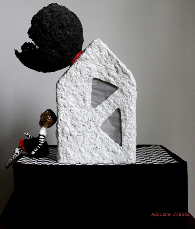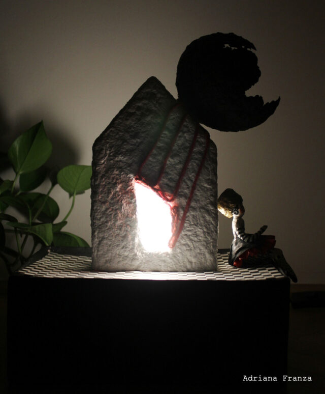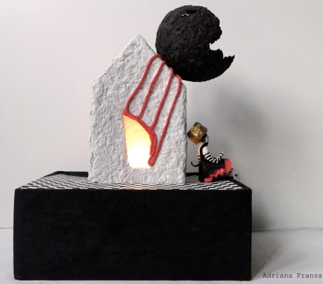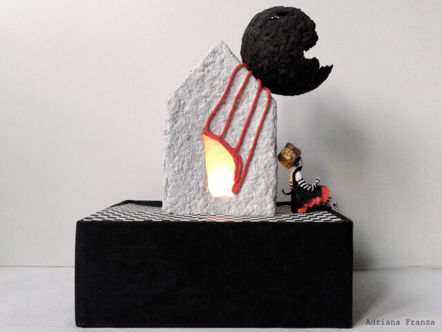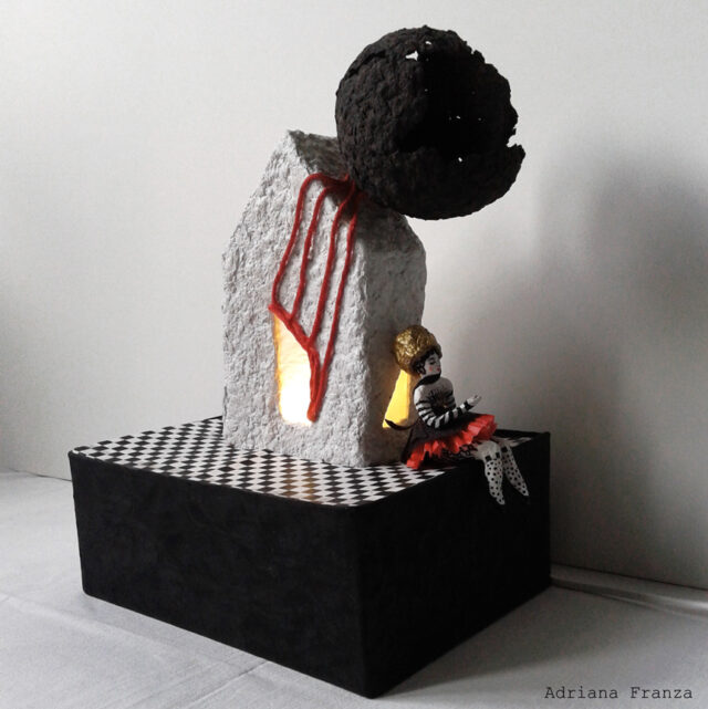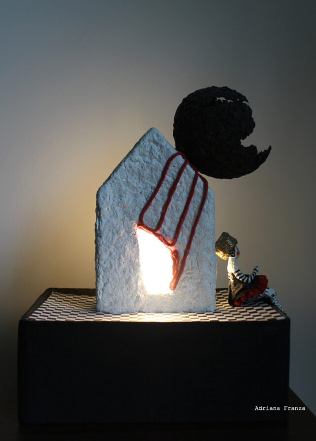 Lampada d'atmosfera modellata a mano in cartapesta.