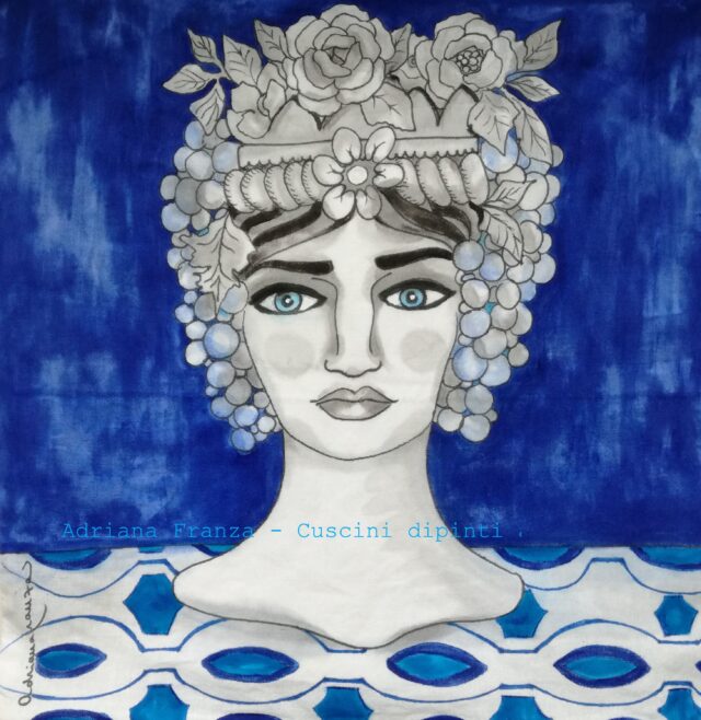teste_di_moro_moderne-cuscino_dipinto_a mano_blu-testa_vasi-siciliani-sicilia-teste _di_moro-uva-souvenir_siciliani-cuscini_dipinti_a_mano-homedecor_design-fiori
