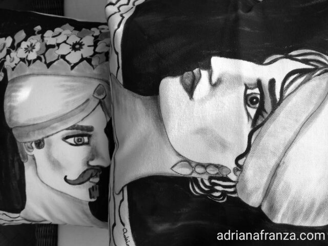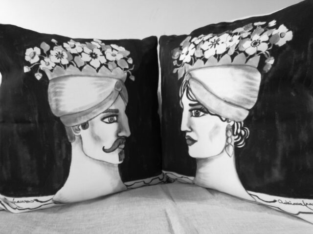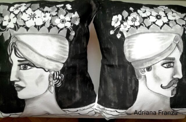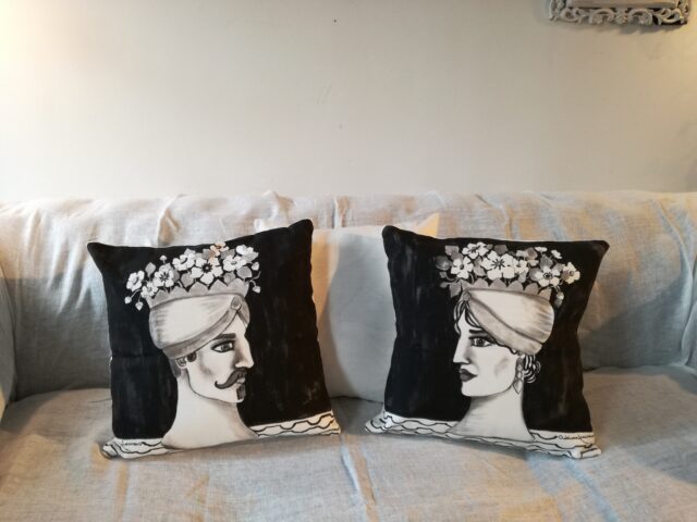 Con la pittura su stoffa interpreto in modo diverso questi bellissimi vasi tradizionali, che diventano cuscini. Con opportune varianti di colore, sottrazioni e aggiunte, questi cuscini possono adattarsi a tutti i tipi di arredamento. Contattami per acquistare questi cuscini o richiederne una variante personalizzata.