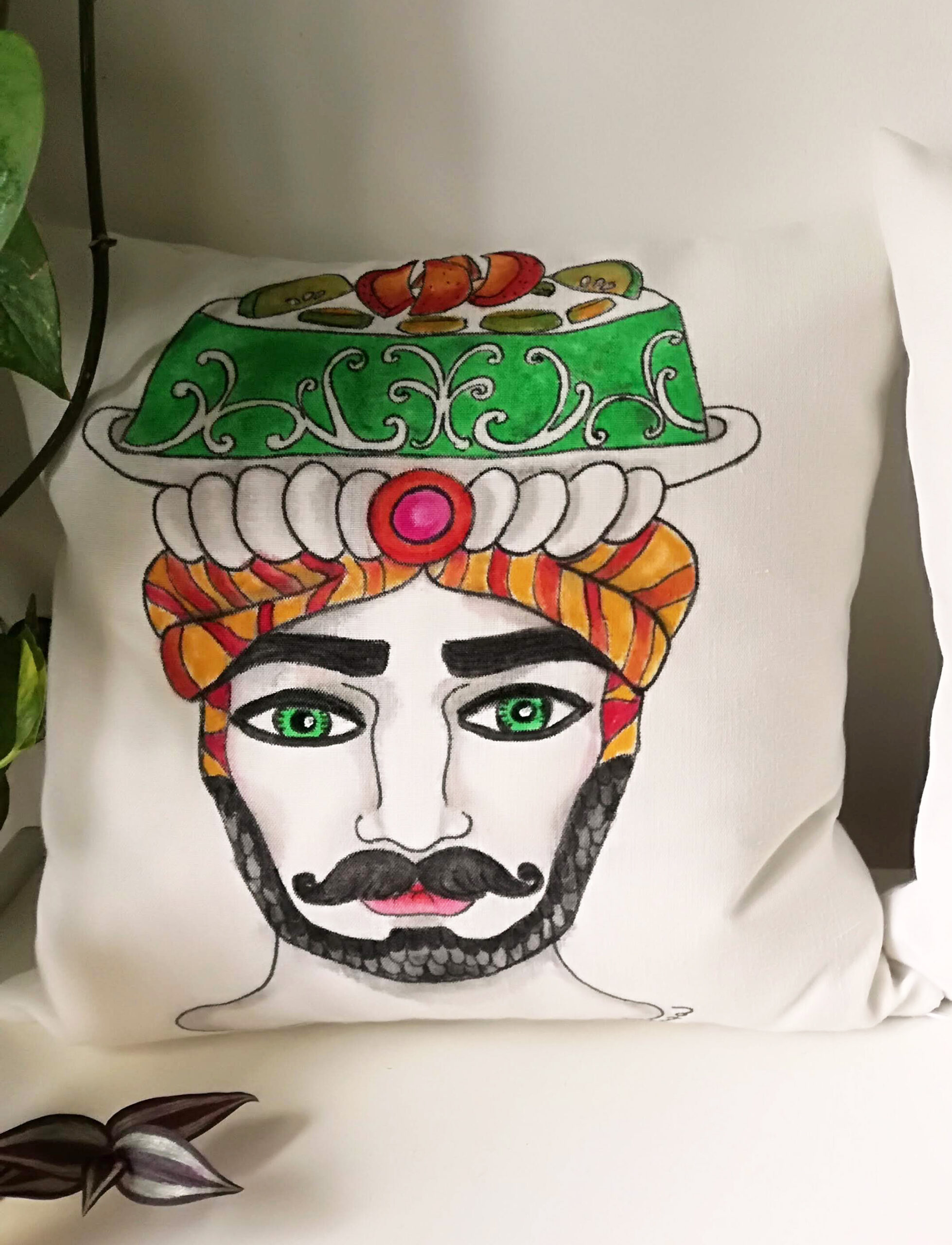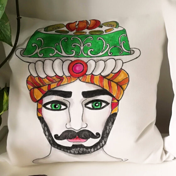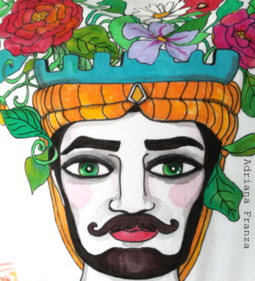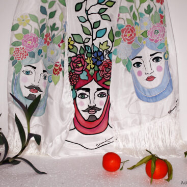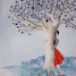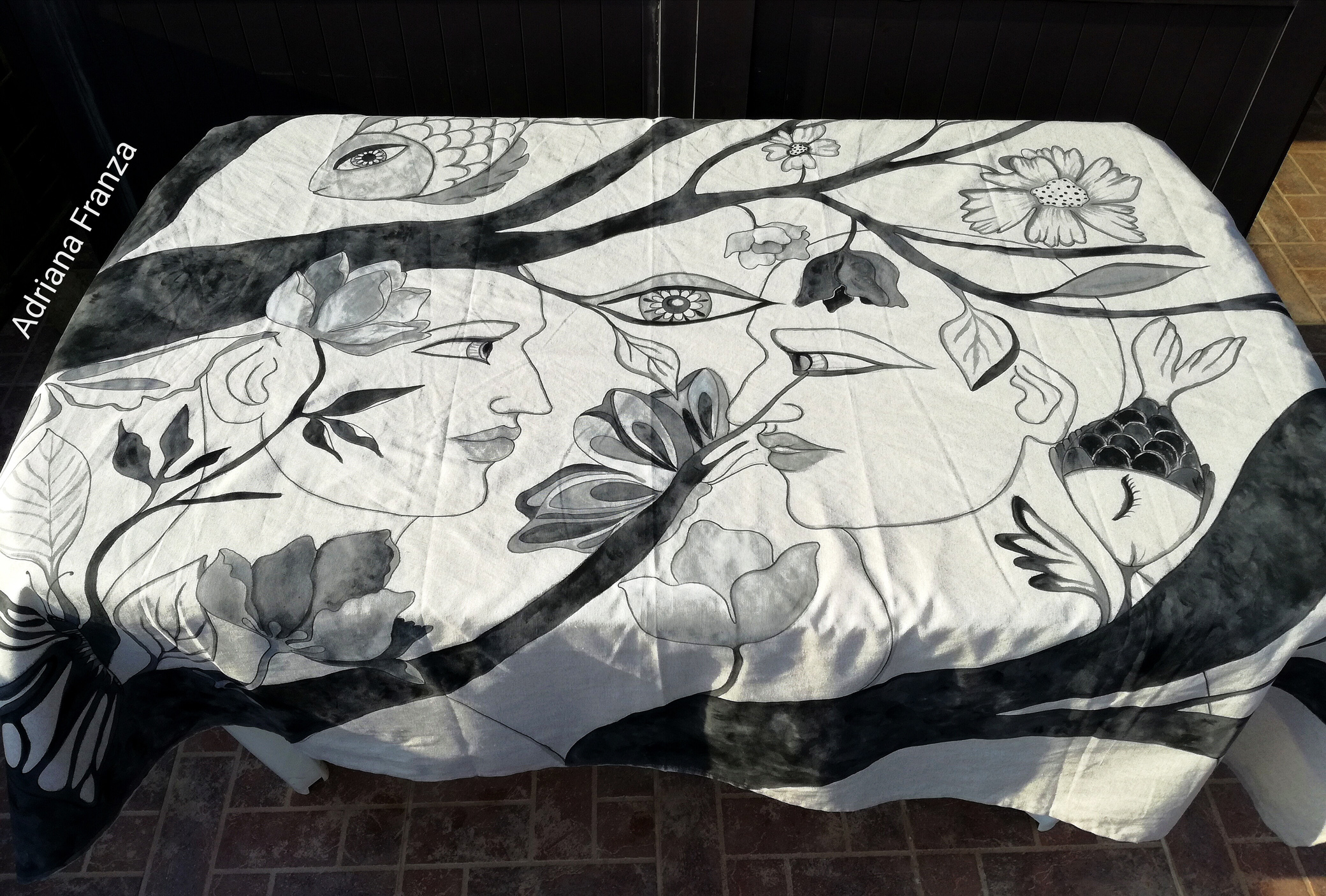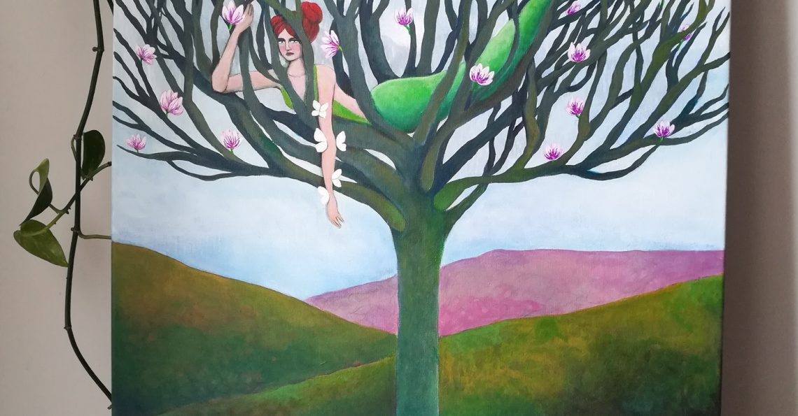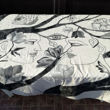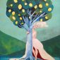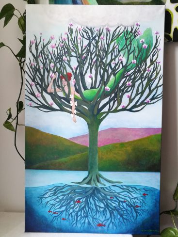 Albero della Vita – Sole e luna /Acrilico e filo da ricamo su juta, 65×85 cm