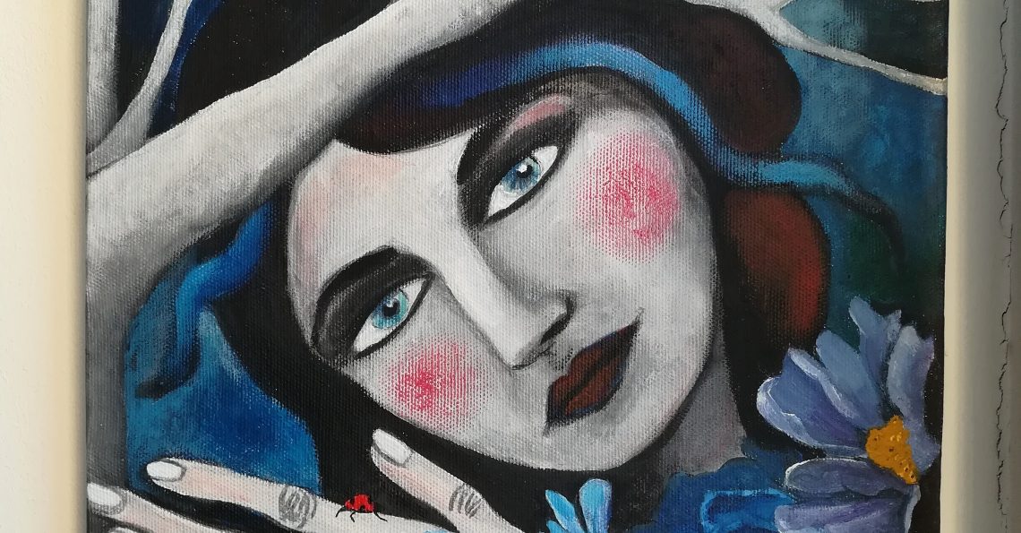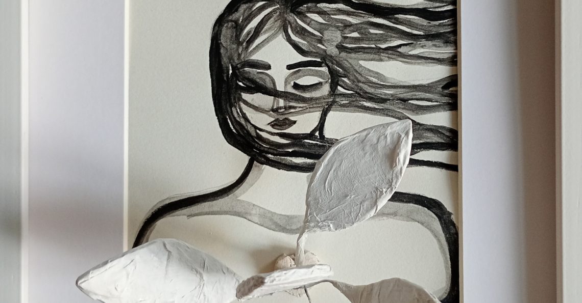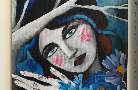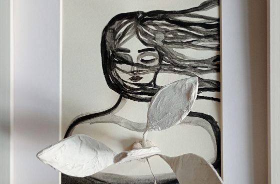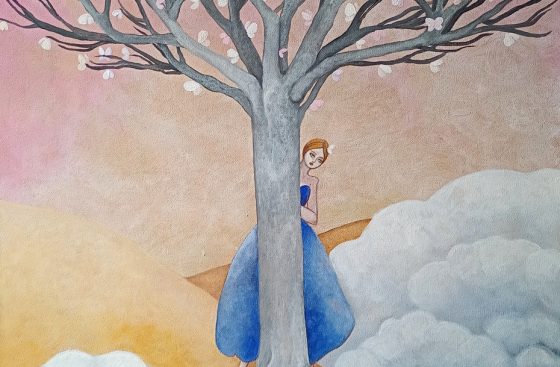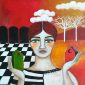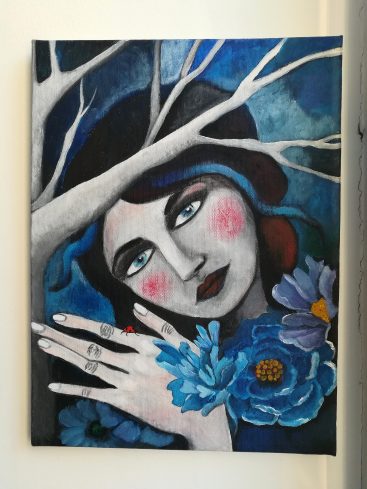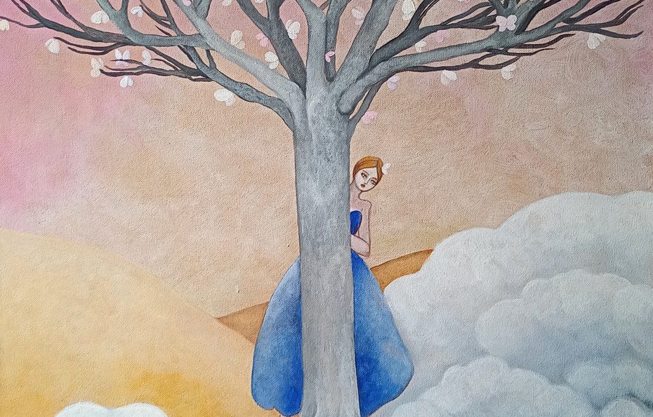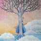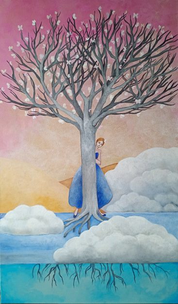 Albero della Vita – Sole e luna /Acrilico e filo da ricamo su juta, 65×85 cm