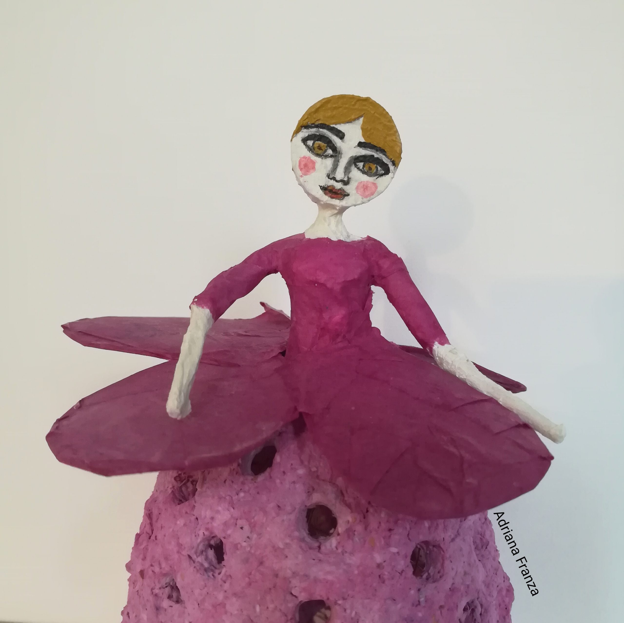 Alba è una lampada d’atmosfera modellata a mano in cartapesta, con dettagli dipinti in nero.