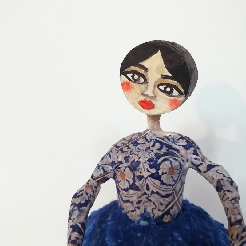 Sole è una statuetta realizzata in cartapesta. La sua gonna fittamente forata può ospitare