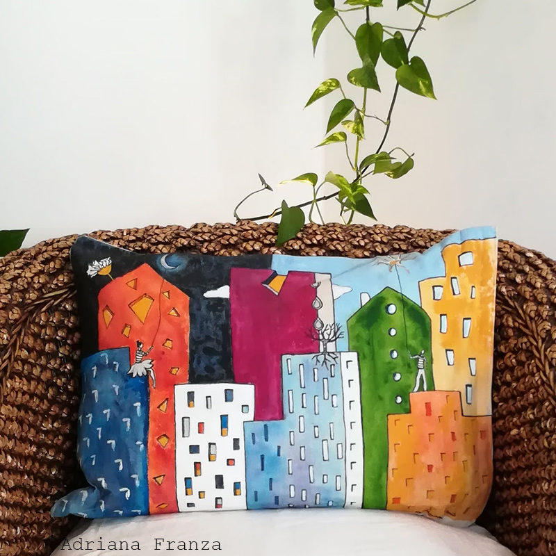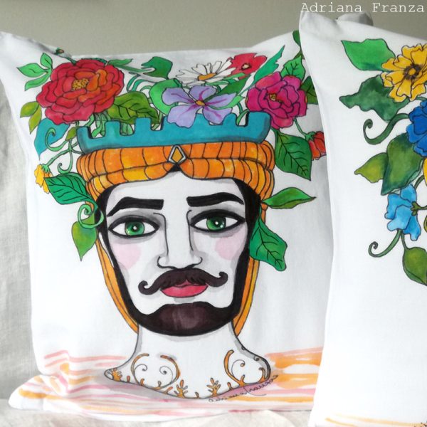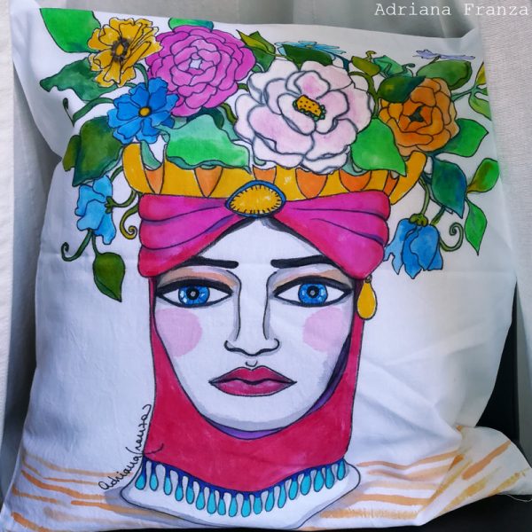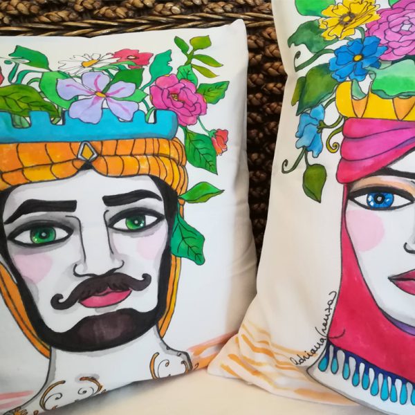 Cuscini dipinti a mano, lavabili a mano in acqua fredda, 40×40 cm.