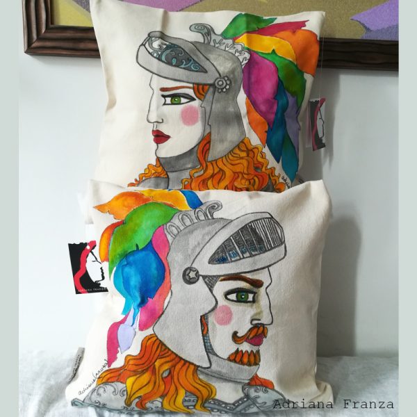 Couple of hand-painted cushions, hand washable in cold water, 40 × 40 cm.
